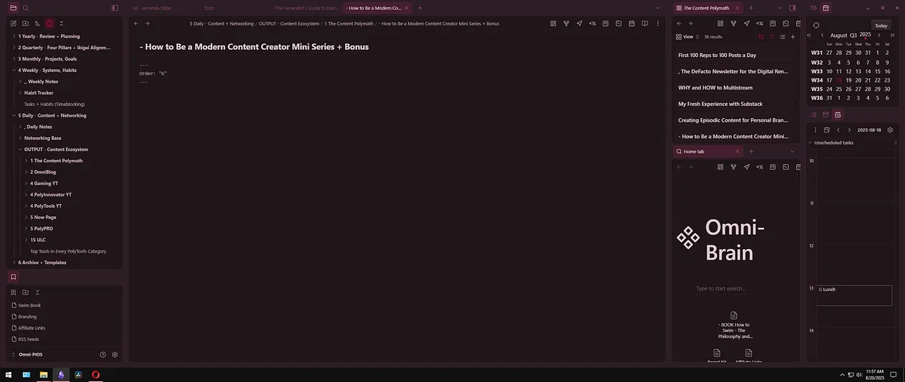 I’ve been treating it as free creator coaching calls too in case you want to ask me something! Here is a screenshot of what my Obsidian vault looks like, and if you want to see more check out the video above.