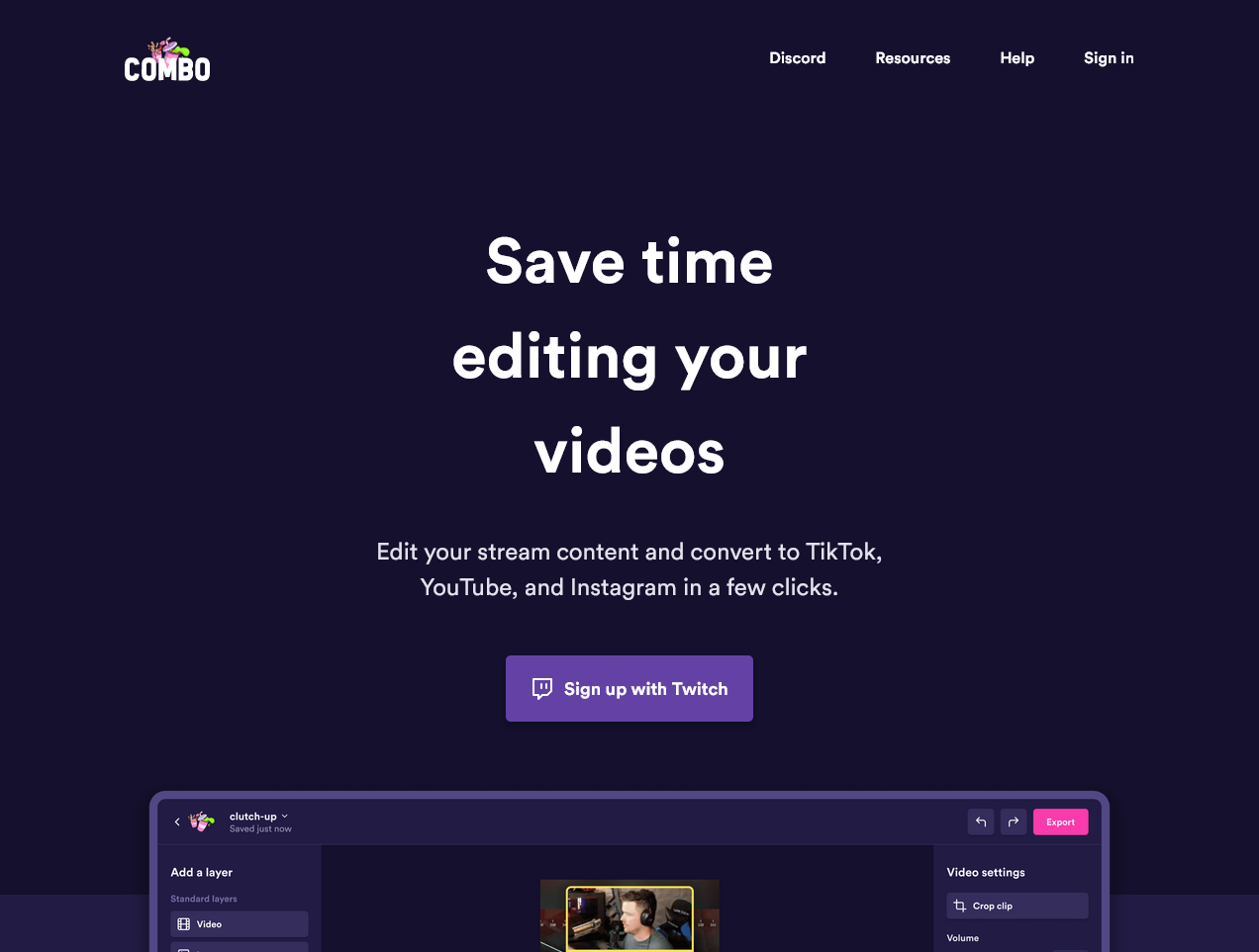 Combo is the fastest way to store, edit, and share your short-form content from one platform to another. For example, if you want to share your Twitch clips to TikTok in a few clicks, you can do that with Combo.