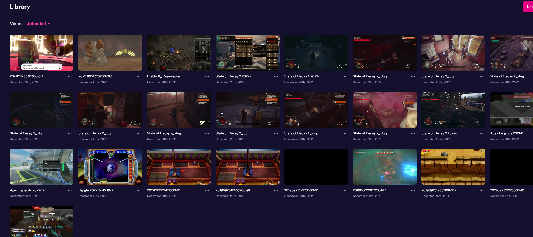 A huge gripe of mine is that it always starts out in the imported view, but since I don't import from Twitch or YouTube it is really annoying. I wish you could change the default to the "uploaded" view.