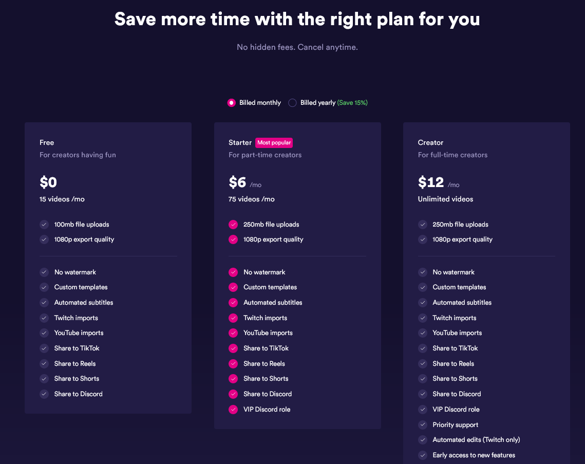 Honestly the prices aren't that bad for what you are getting. I think they might have changed some of it too since the last time I checked. I don't recall the free plan being able to do 1080p exports. Although the issue is usually more the 100mb file size, and that was why I ended up having to go for the pro plan. Now there seems to be the "Starter", which is a lot more viable for a lot of people.