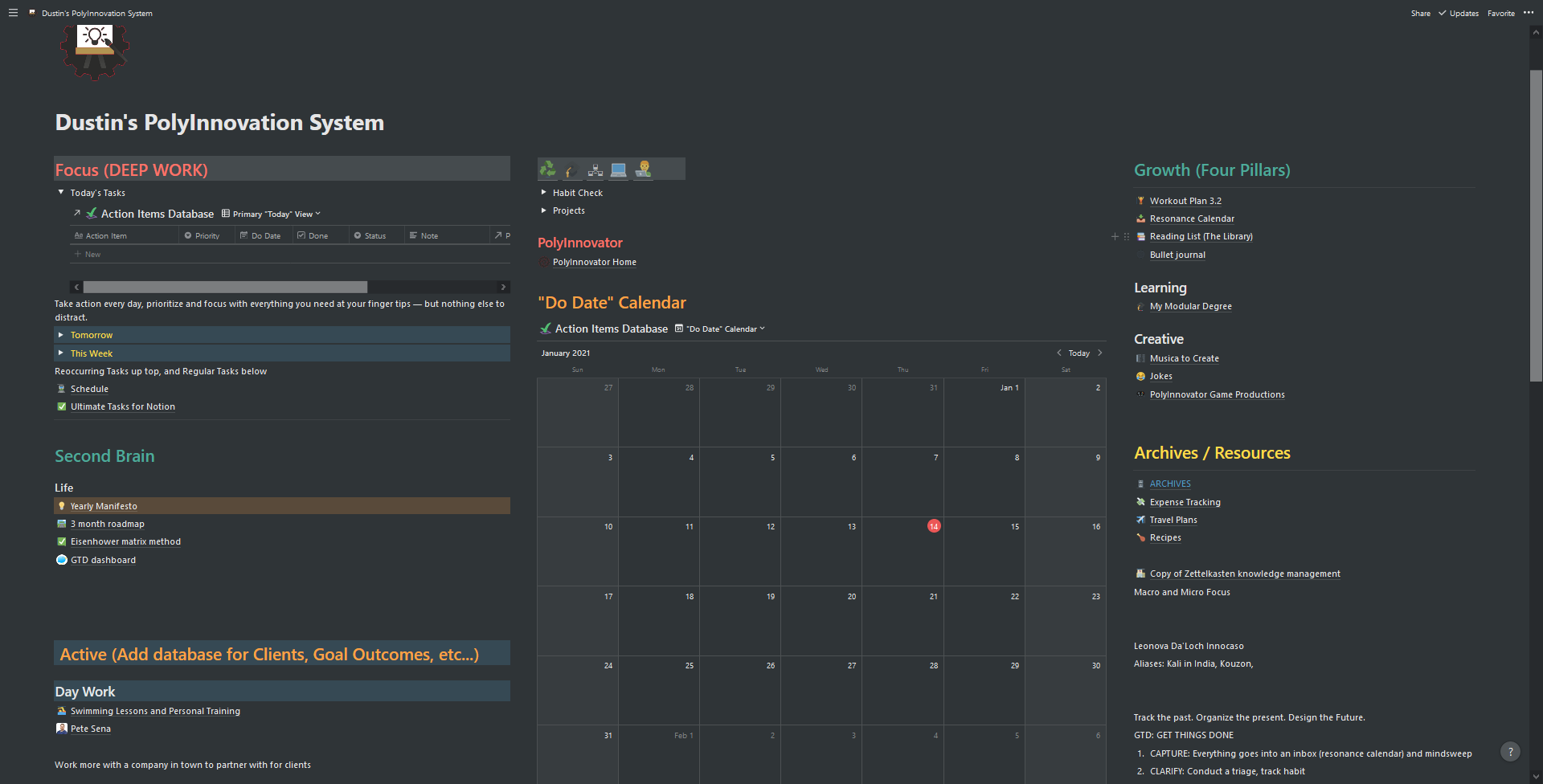 Other areas you may notice some PARA, as in The Archives and Resources, which are two separate collumns in the Second Brain, but for me it ended up being easier to combine them.