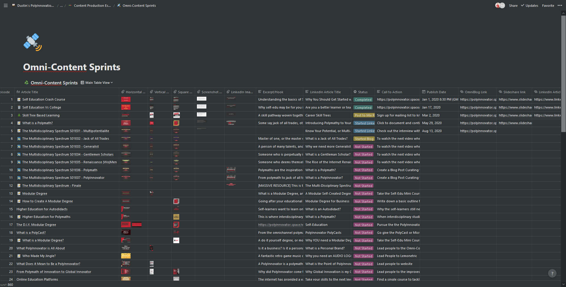 Meaning I would have various "projects" as many of them called it, which I often put down as YouTube/PolyCast/Instagram, etc. Then beneath that I could have the database or table to organize the content planning. Now some did better than others such as Infinity, Airtable, Monday.com, and a few others. Asana was alright, but I didn't jive with the system. I do encourage others to try it though because I will say it was really well made!