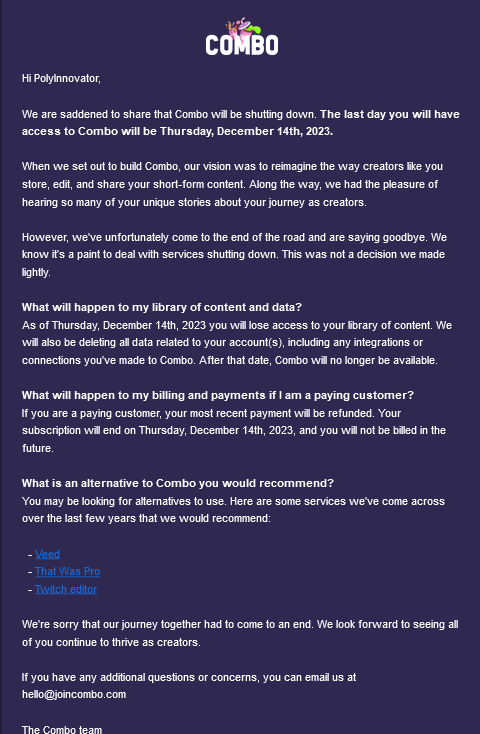 Ironically I would have not mentioned the three they did in the email, those being veed, that was pro (which I hadn't even heard of), and then the generic twitch clips feature.