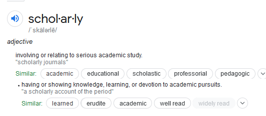Taking more after the second definition there. A scholar is someone pursues the same education as an academic, but goes beyond the basic requirements. Imbuing their devotion to the learning of the subject.