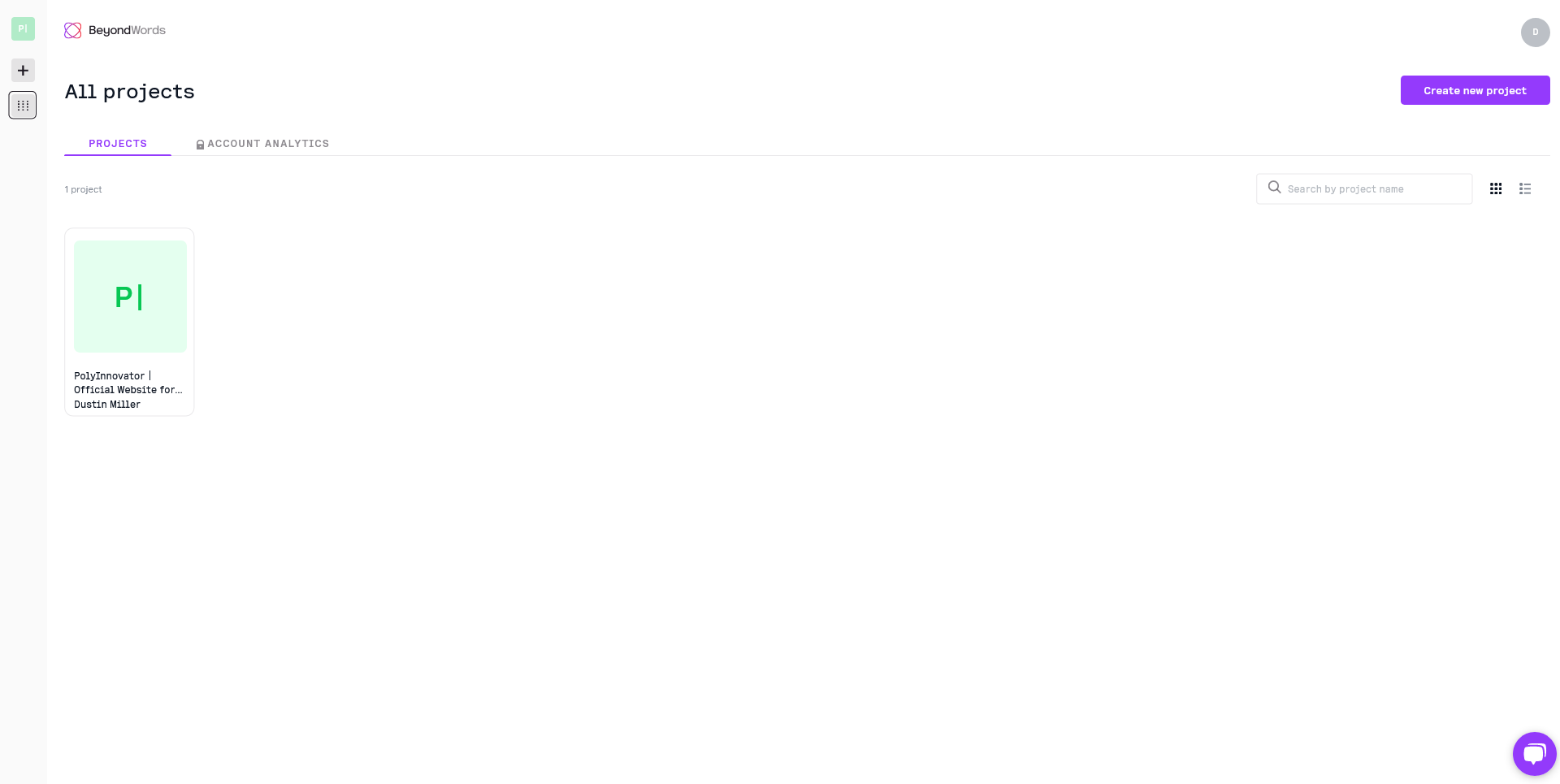 You start off on the Projects Dashboard