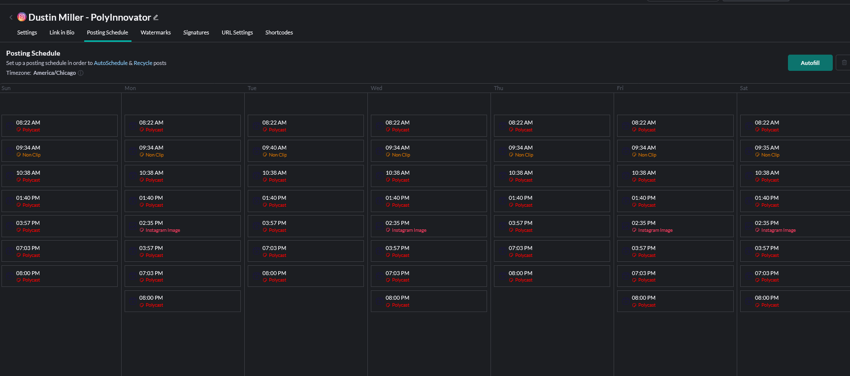 Here is my Posting Schedule for Each Platform: