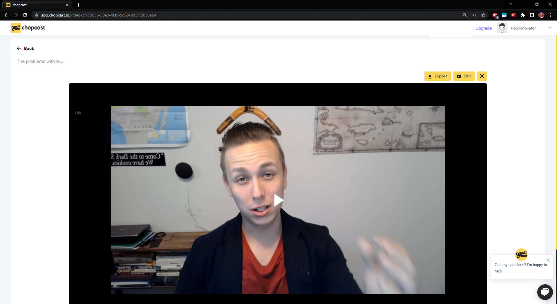 - Transcription issues with my specific words (i.e. polymath or my name PolyInnovator). BUT I do not hold that on Chopcast, as I face those issues on EVERY transcription service.