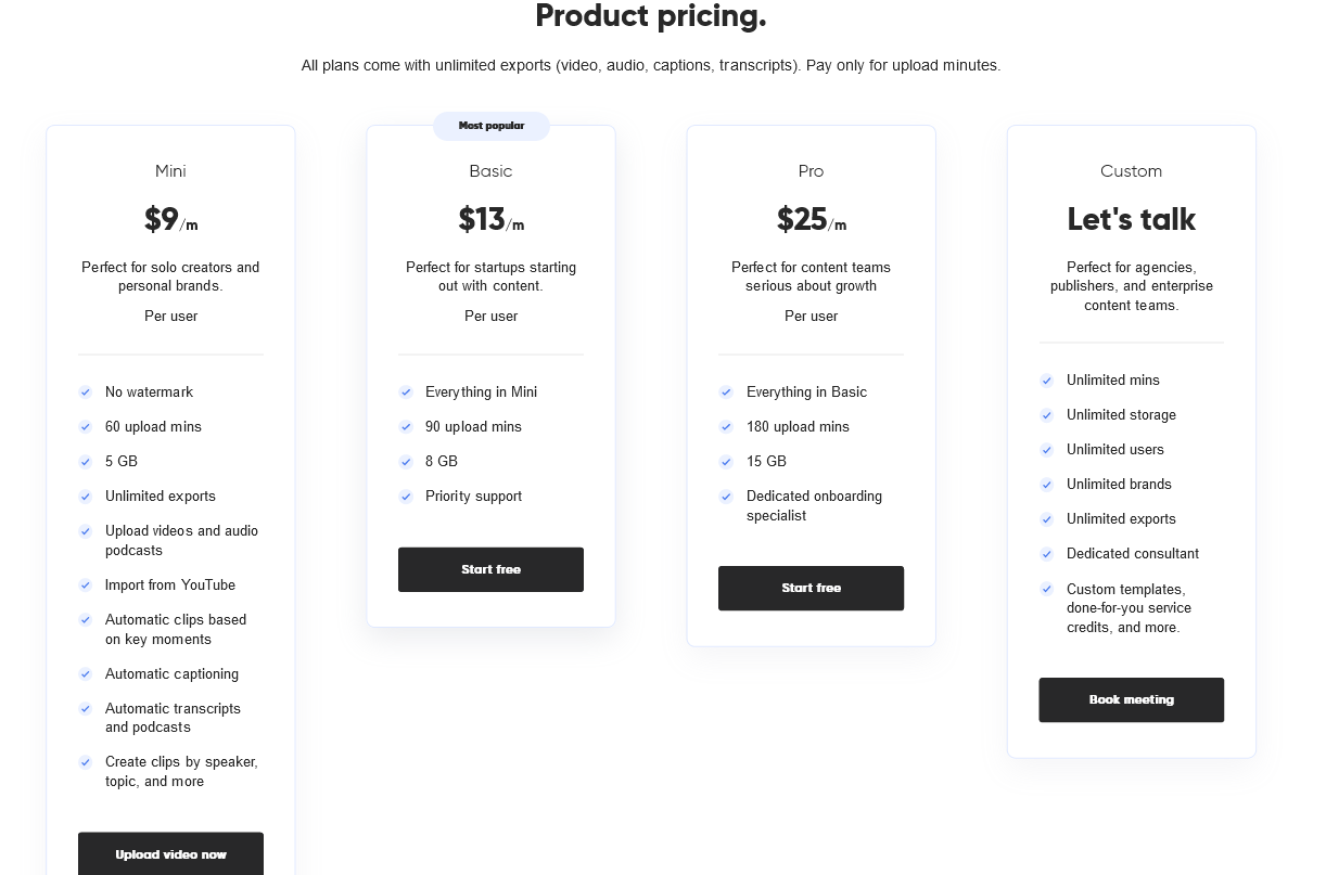 One thing I think is important to note is the cost of transcription. Given that most tools cost a lot more for even automated AI transcribing, the 9/m might be one of your cheapest options for transcribing, even if you don't turn it the video into clips.