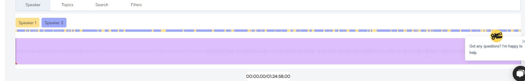 In the editor you have a timeline with highlights when each person speaks, auto-transcript, and customization options: