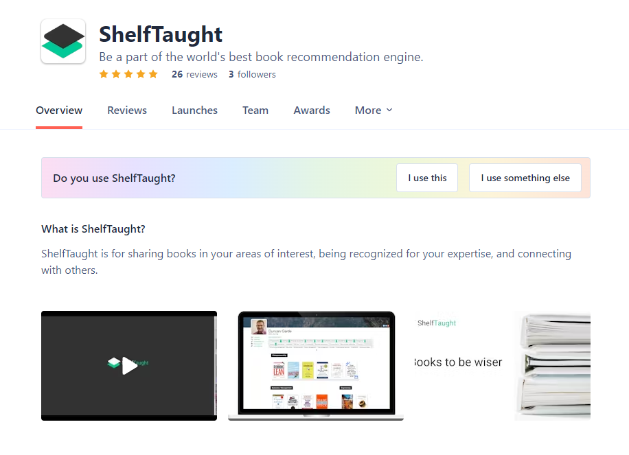 ShelfTaught is for sharing books in your areas of interest, being recognized for your expertise, and connecting with others.