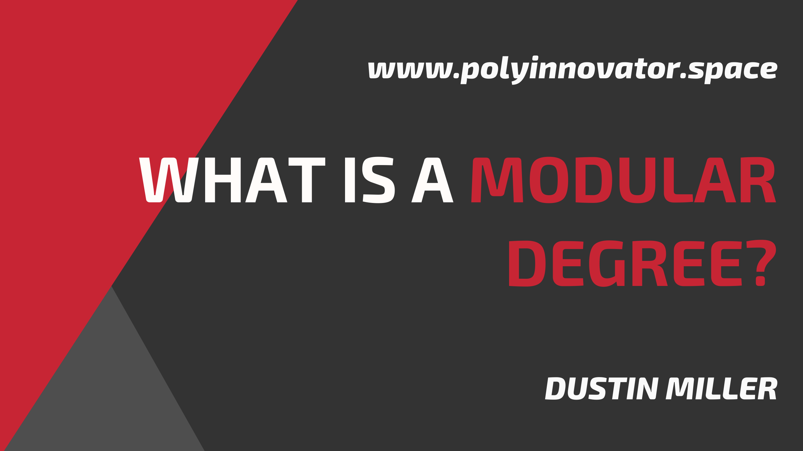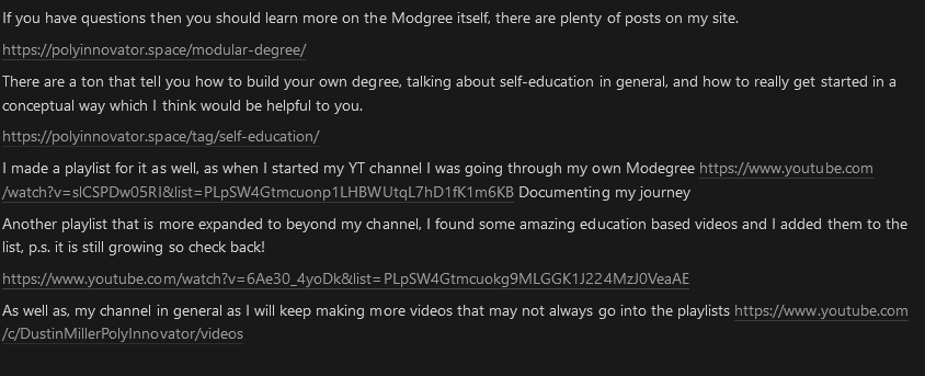 Hello, I am Dustin Miller PolyInnovator, my personal branding/content journey started by documenting my own DIY Modular Degree pathway. This idea for a do it yourself degree, was coined by someone else, who honestly just seemingly did it just for the money. HOWEVER the concept of creating your own degree is a universal one. I have spent countless hours pouring over others who have done it. Scott Young, Jonathan Haber, Laurie Pickard, etc. I've also talked about them exstensively on the OmniBlog or TeleInnovator. I am creating this post today after YEARS of wanting to get it out.
