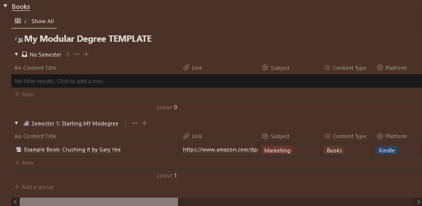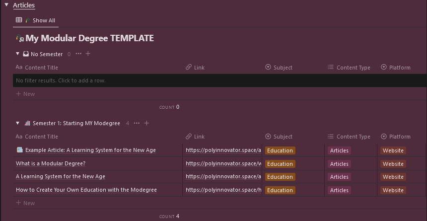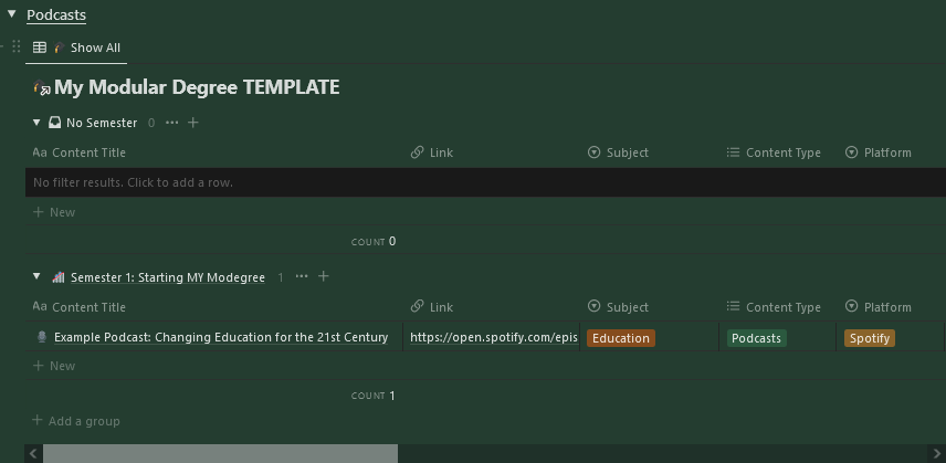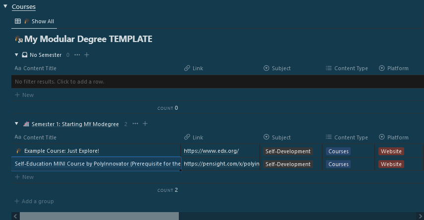 I think you can get a LOT from it, even if you don't make your own with my Notion Template. I just simply wanted to give you a platform to try and create your own education/degree.