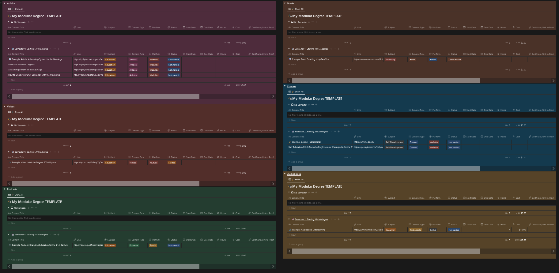 I highly suggest taking the Self-Education mini course, even you're already a prolific autodidact. That is linked above in this post, as well as IN the Modegree template. You'll find it pretty easy on my site too.