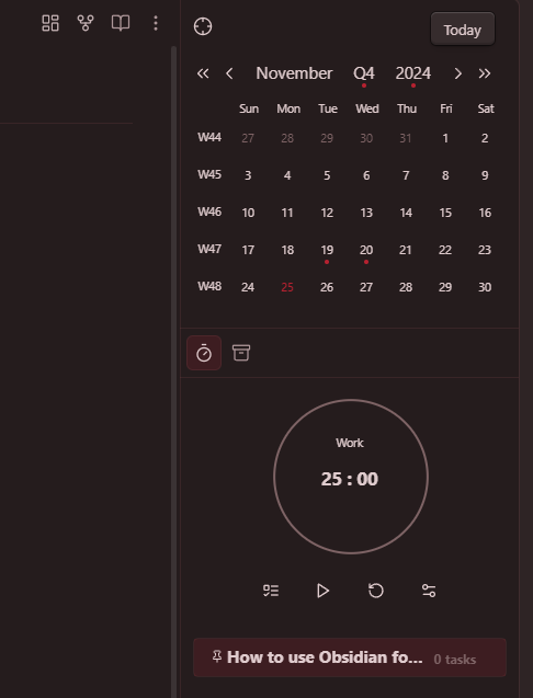Obsidian is a really interesting tool, and it allows you to do some really amazing things. Such as Pomodoro timers, calendar planning, project management, and even mind-mapping.