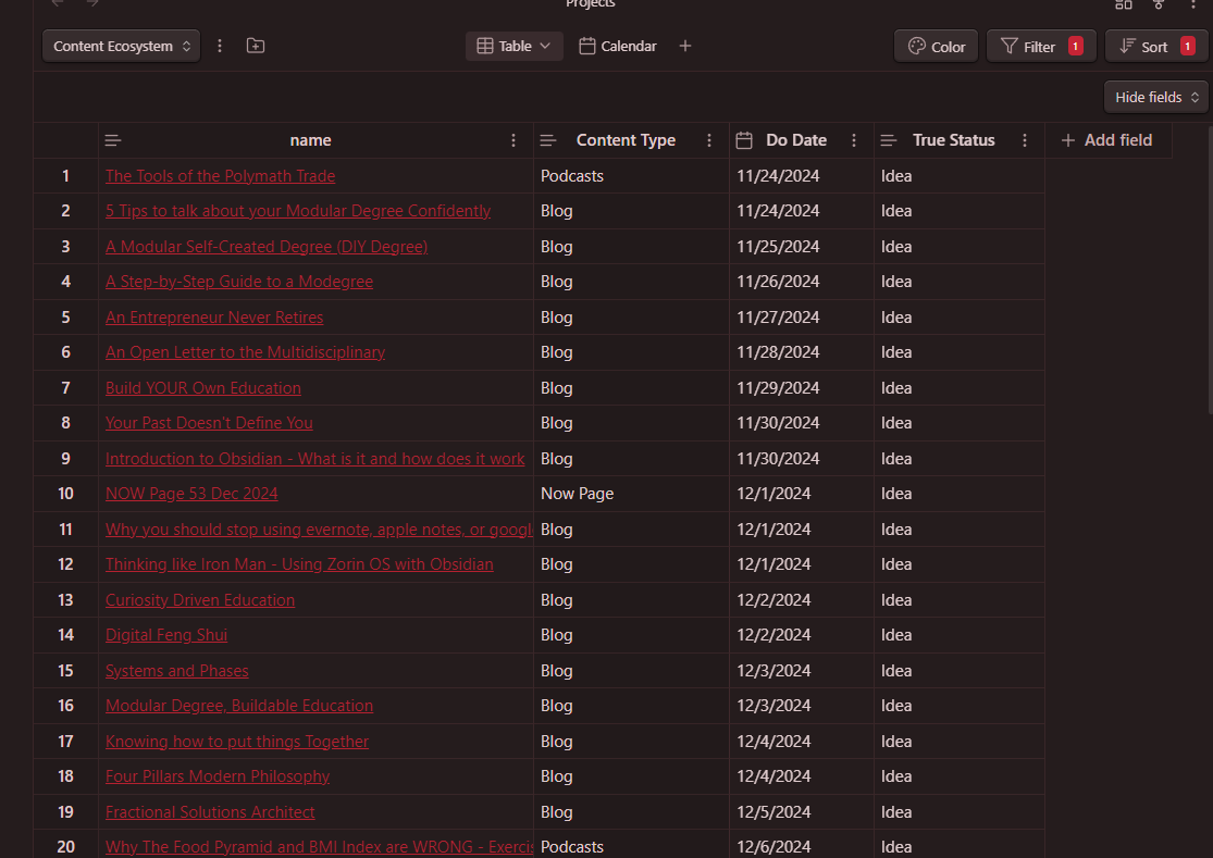 This is how I plan my content out now, and while I miss some things about Notion. I do not miss the days where the tool would be down, and then I couldn't use it at all. Having a local tool changed my use case drastically.