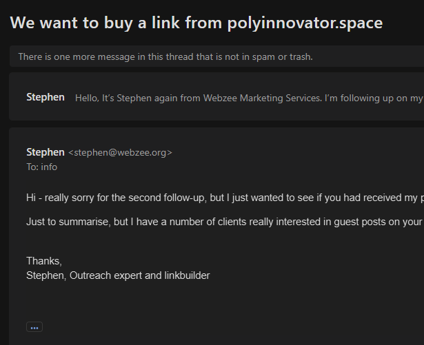 This "Stephen" fellow pinged me 3-4 times without any response. I finally sent an email back stating "f*** off". Although that was probably a bad idea, as it probably told them that the email is "live".