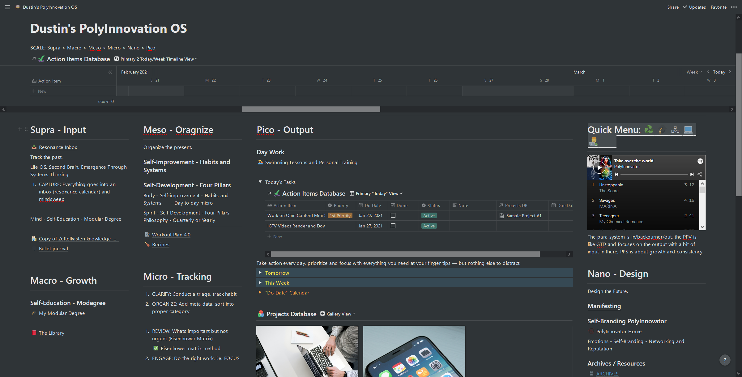 I mean the idea of a Second Brain, or Life OS, Habitica: Gamifying Life, or even DEEP WORK by Cal Newport. They all have something unique to offer, and so what if someone (me in this case) were to combine them all? I still need to work on gamification of the PPS truth be told, but I AM working on that for the