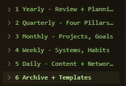 For you however I would just simply start organizing a basic folder structure, you can copy mine, or you can just do PARA method for the time being. I'd avoid the GTD framework and Zettlekasten, they sort of overcomplicate things. To be frank so does the PARA method/second brain philosophy. All three were made before these tools were created, so they don't adapt well in my opinion. Hence why I created the PIOS.
