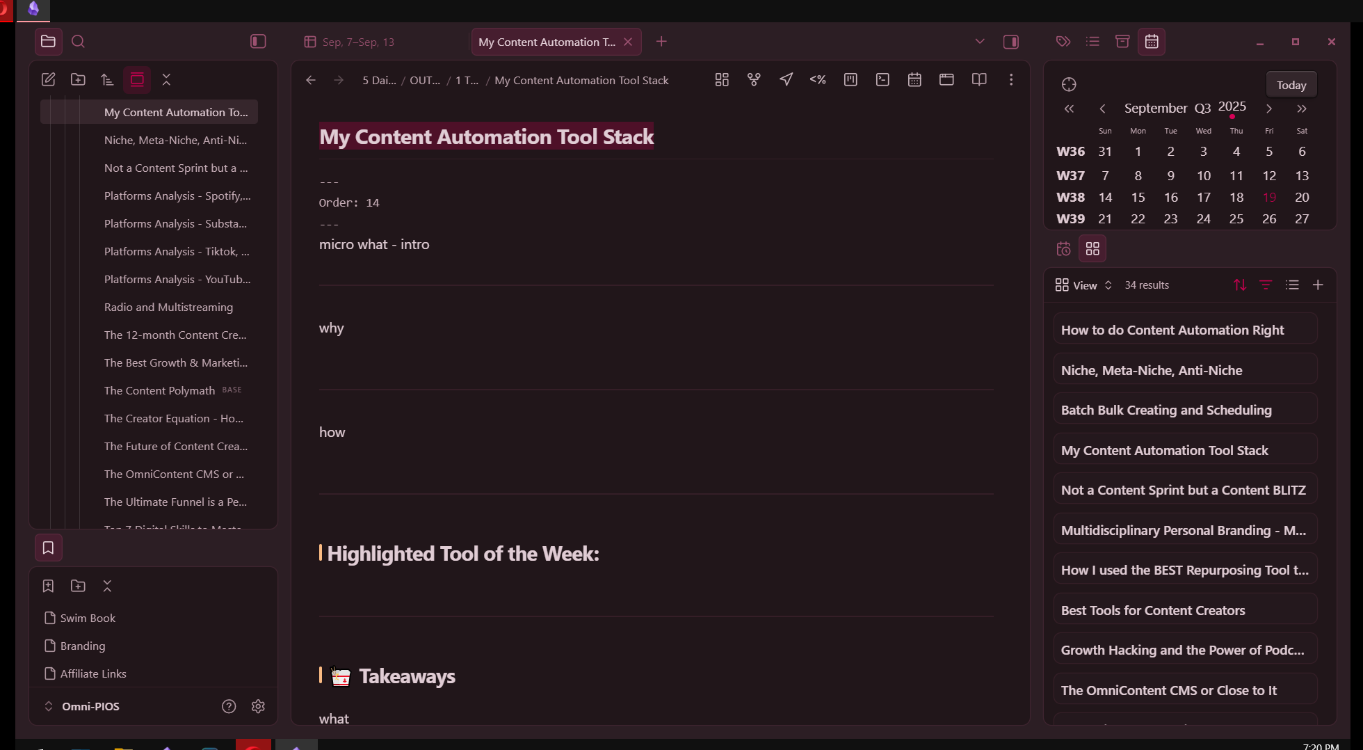 This is when I was really determined to try and work on my OmniContent more, or at least plan it out better. I would try out things like Notion, Clickup, Monday, Taskade, and various other project management/task management tools.