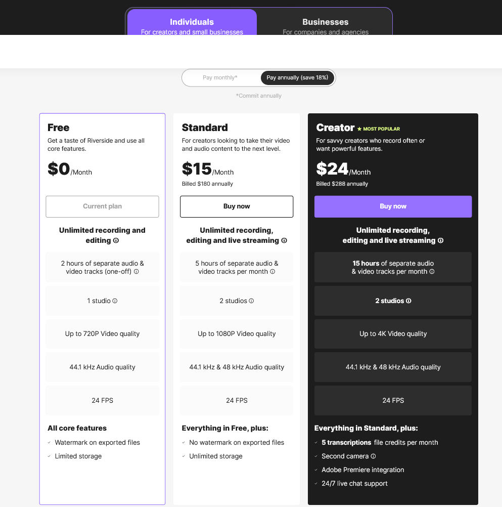 However it also means you're paying for a lot more features. They are the BEST recording tool on the market, I've used all of them (either as a host or guest), and they have a lot more to offer too. Such as livestreams, their magic editor for long form video (which is integrated with the clips), and more.
