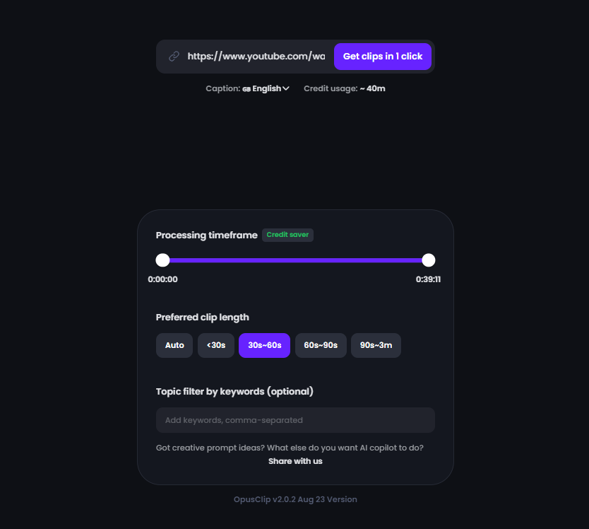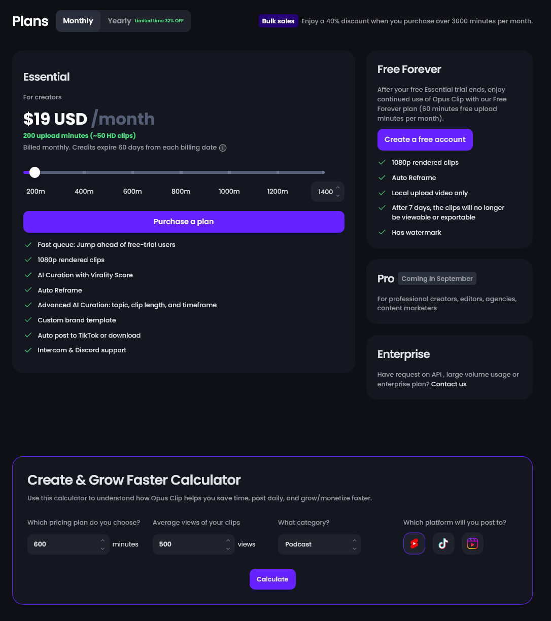 One of my biggest gripes with Opus, and I've told them too, is the price is pretty high. However the cost of ChatGPT's API is also pretty high, and they are doing a lot more than just finding clips. If you are just using it month to month, and not trying to convert a whole backlog. Then the price isn't so bad.