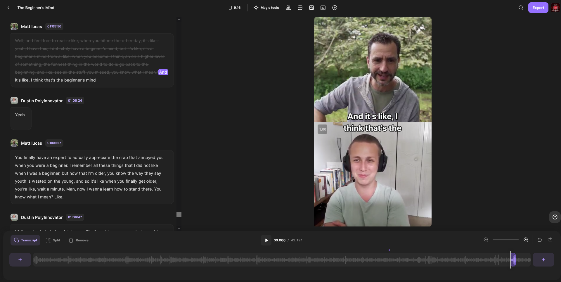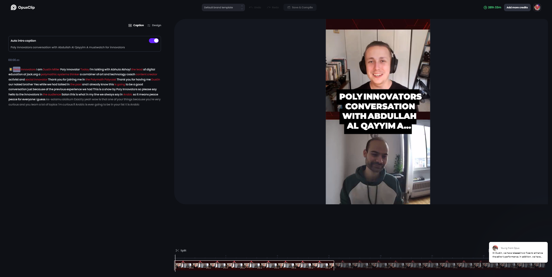 I had to wait a whole month until those few videos were re-ran before I could really continue. That was frustrating, but since then I was able to finish up most of the rest of the interviews. I will say presumably due to how Riverside presented the final aspect ratio (THIS WAS MY CHOICE). Opus wasn't able to reframe this video well. I have four videos in limbo right now because of it.