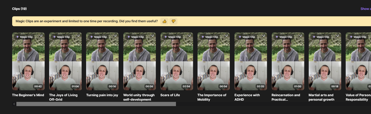 I spent years working with content repurposing tools, and it wasn't until Opus that it was simple enough to where I got off my ass and made these clips. I'm serious it was a pretty big herculean task to go through over 100 interviews, and over 200 YT videos total (as I did use my vlogs too).