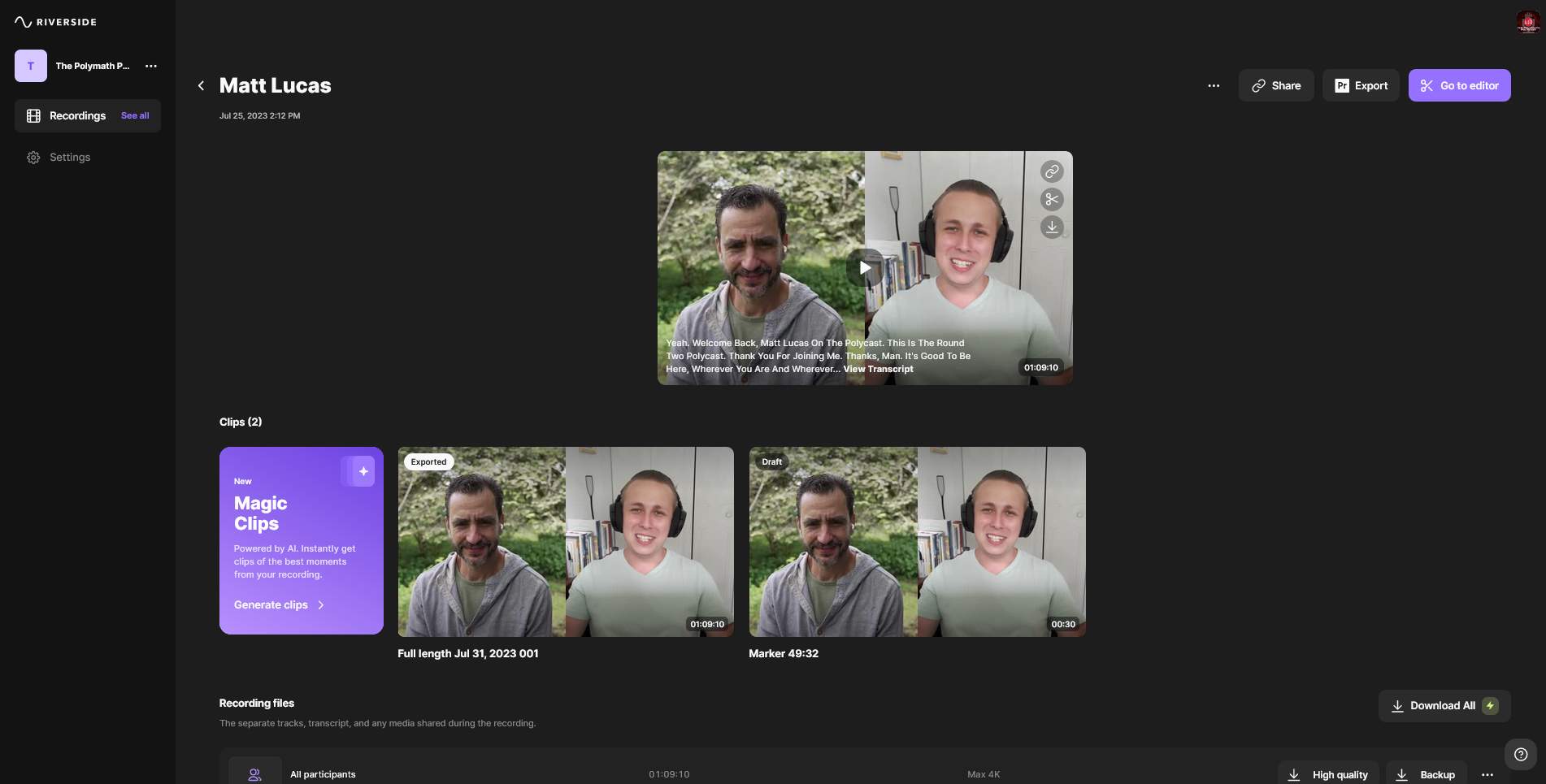 Given that my experience with the Magic Clips has been short, not just because it came out recently, but also because I had Opus at the same time. I want to point out that my opinion of Riverside overall is quite high, and I was estatic to see them in person at the podcast conference.