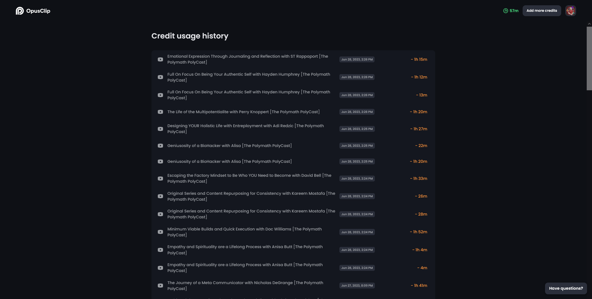 I used this tool for a majority of my clip repurposing, at the moment. I still love Chopcast and Recast.Studio, they're better at editing. If I have a particular clip I want, which I do when it comes to my "what is a polymath to you" question I ask every guest. I'll go to those tools for a use case like that.