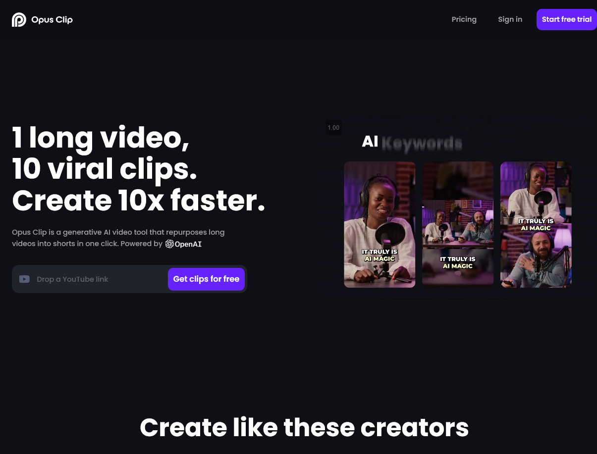 - Currently the simplest and most powerful tool for short form video clips (although I know of others on the rise, so Opus better keep it up!)