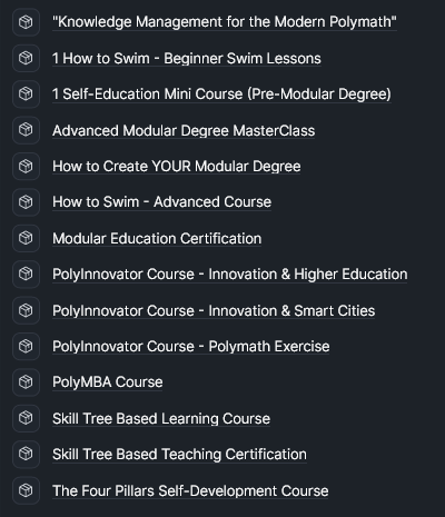 From Self-Education, and skill tree based learning, to sustainability and innovation. There is a course here, or will be here, for everyone.