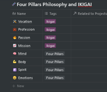 Keeping track of how your actions impact your life, from the four areas/pillars, to the attainment of your Ikigai.