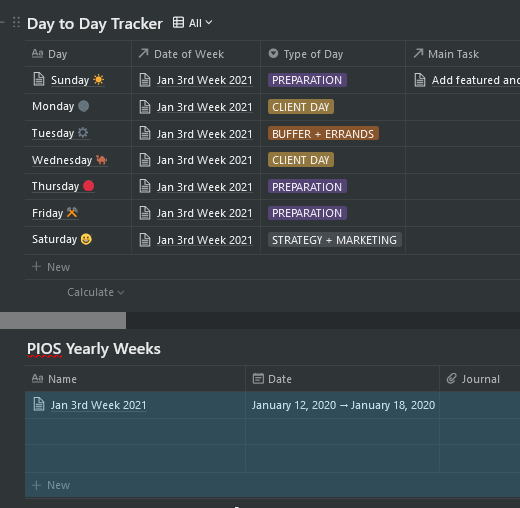 First layer of the PIOS featured around the yearly review and preview. Take in what you did in the past year and reflect. Then plan for the next year, to get even more done!