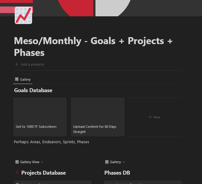 In the template I am working on making relations to other databases, as your projects should fall under ONE phase, but your goals can technically be for more than one project. Not to mention being able to relate your tasks to certain goals or projects.