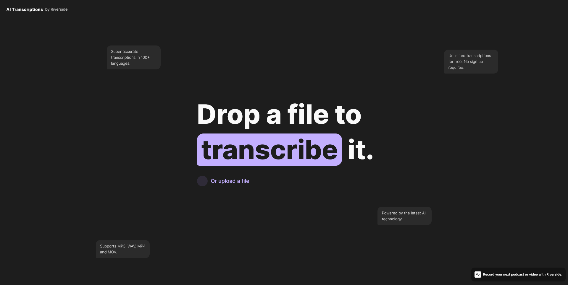 I'm already a fan of the actual Riverside.fm recording tool. I use it for every interview nowadays. However Riverside also came out with a free tool for people to use to transcribe their videos/audio.