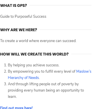 "No matter what success means to you, GPS is here to help you navigate towards your success because we believe in a world where everyone can succeed."
