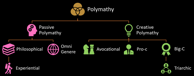 He breaks it down into the passive vs creative, where the first is more of the dilettante. Learning for the sake of learning. Then the creative polymath is more of an "active" path, where the person pursues some sort of output or creation.